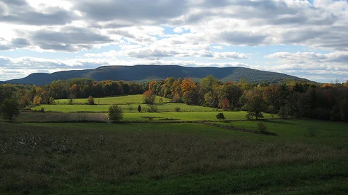 Here's where a better or worse writer might go for the metaphor. Certainly the territory is rich: remember, we're driving past the site of our wedding, the stones of this mountain are made up of these tiny quartz moments embedded in sandstone, and the whole ridge — a 3,000-foot thick cap of conglomerate atop earlier Devonian deposits — is highly durable and resistant to the elements. People have used the stone for centuries around these parts, and it has made its way from town to town. There's a millstone made from it beside a pond in Monroe; chunks of the rock are mixed in with the local gneiss in the stone planters outside the Town Hall in Highland Mills; Central Valley's got it in spades. Like the bits of quartz in their sandy matrix, pieces of Schunnemunk are embedded in the lives of the people who live in this region.